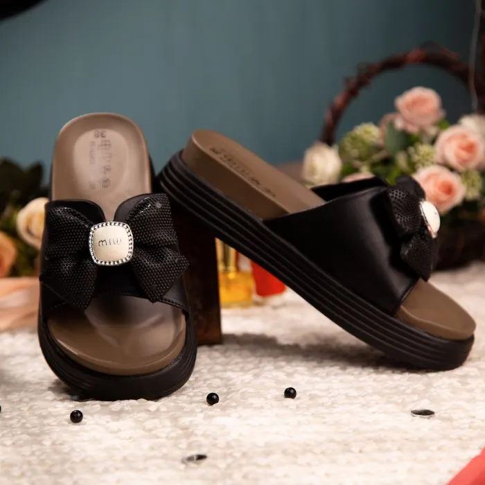 | Upper | High-quality synthetic leather with decorative fabric bow and metal embellishment |