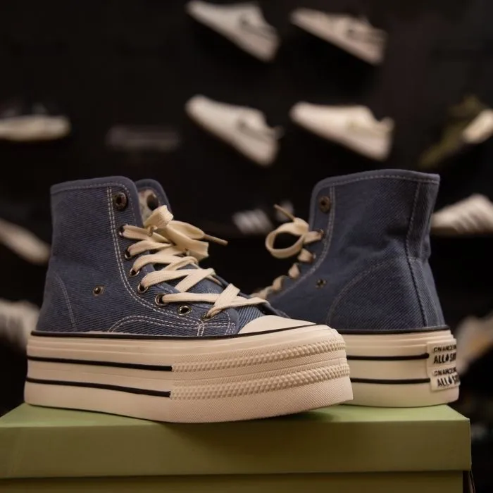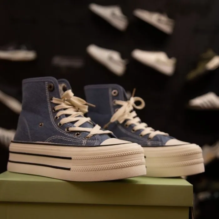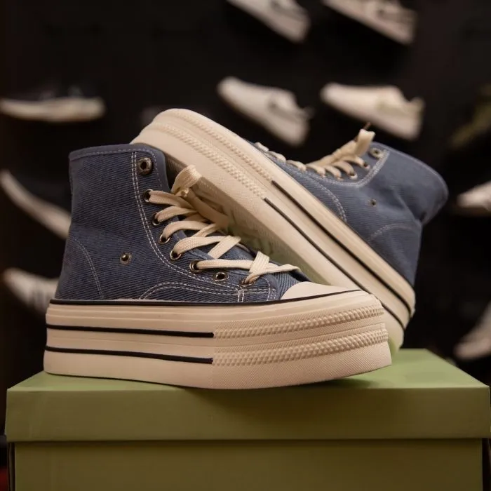 The High Ankle Canvas Sneaker For Women blends fashion with functionality. Its thick rubber midsole not only absorbs shocks but also adds a trendy layered look that complements various outfits. Whether paired with jeans, skirts, shorts, or casual dresses, these sneakers elevate your everyday style effortlessly.